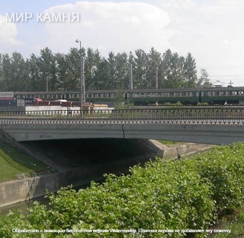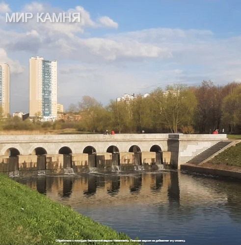 - Многоарочный мост-платина – железобетонный пешеходный мост, сооружен в 70-х годах, расположен рядом со входом в Полежаевский парк, полностью облицован гранитными блоками.