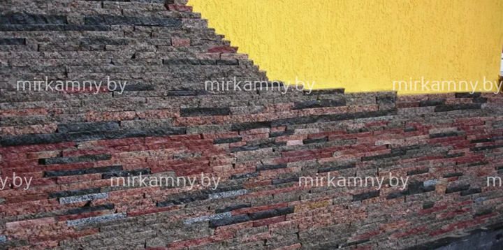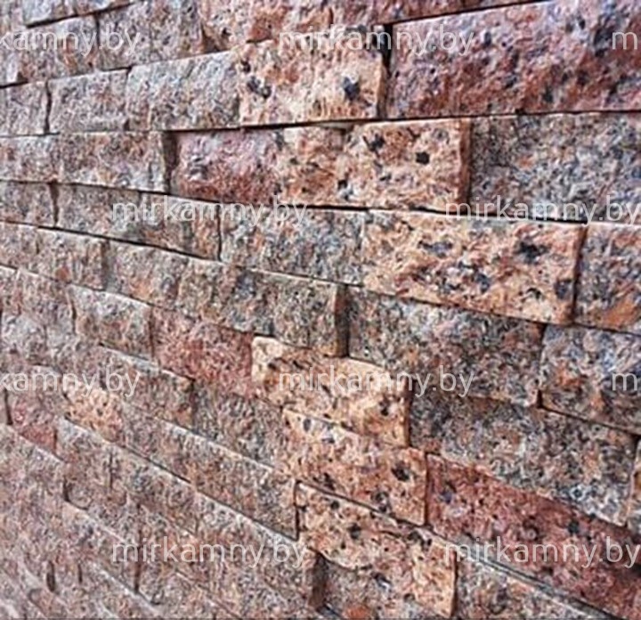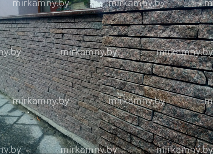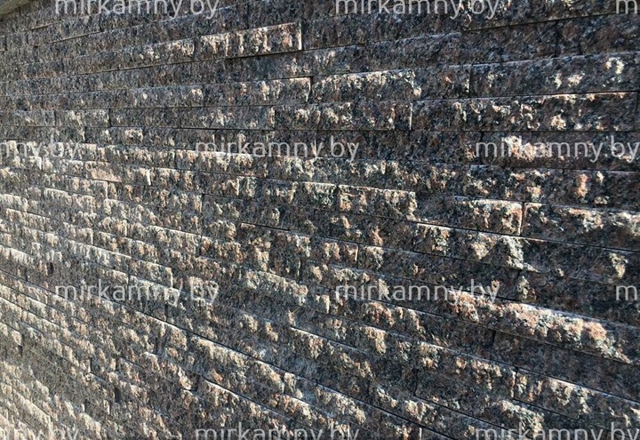 Гранитная соломка — это декоративный материал, который представляет собой пиленые полоски из гранита, имеющую вытянутую, продолговатую форму, напоминающую соломку. Длина полосок варьируется от 5 до 30 см, толщиной от 3 до 5 см. Особенностью гранитной соломки является то, что соломка имеет рваную поверхность, но имеет ровные края, благодаря чему при облицовке не видно швов.